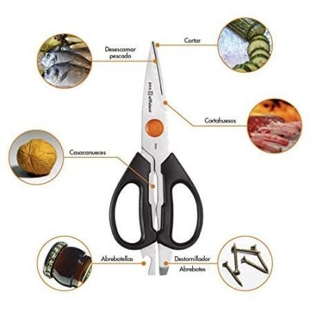Están fabricadas en hoja de acero inoxidable alemán, Molibdeno Vanadio, de alta calidad. El mango, fabricado en polipropileno, consigue un agarre ergonómico y seguro de las tijeras.
