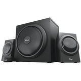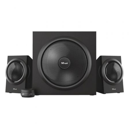 'No hay duda de que el juego de altavoces Yuri 2.1 con subwoofer de Trust' llama la atención. Su diseño compacto y elegante se presenta en un 'refinado color negro, con subwoofer de madera. Su tamaño reducido 'permite que se adapte a cualquier equipo, ya sea en la sala de estar o 'en el despacho de casa. '