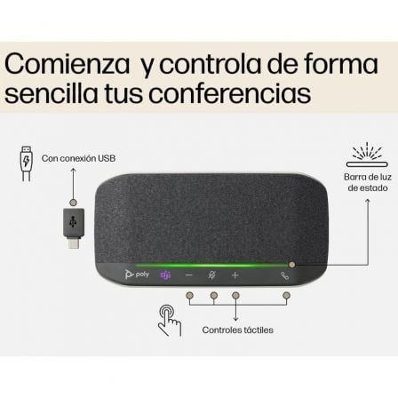 Duradero y compacto, este altavoz manos libres IP64 resistente al polvo y al agua se adapta perfectamente a tu estilo de trabajo. Utiliza tus aplicaciones de colaboración favoritas y libera espacio en tu escritorio gracias a su diseño compacto y dinámico.