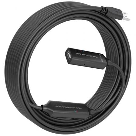 Cable prolongador USB 2.0 con conector tipo A macho en un extremo y tipo A hembra en el otro