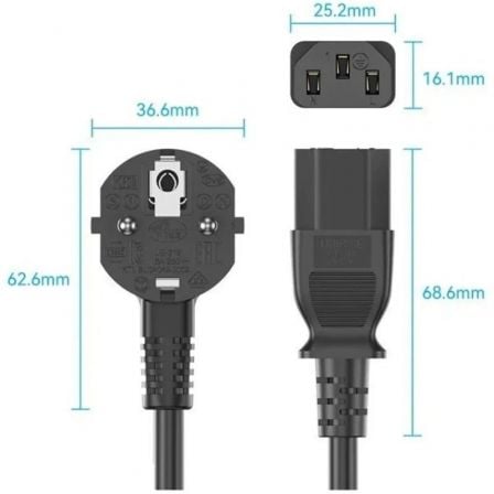 • Name : Cable de Alimentación Vention ZCJBAC/ IEC C13 Hembra - CEE7 Macho/ 1.8m/ Negro
