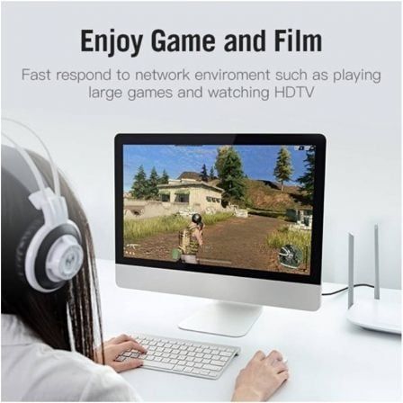 En comparación con la cubierta de plástico habitual del cable UTP, los cables Ethernet de alta velocidad con cubierta de PVC y múltiples láminas de aluminio brindan un blindaje fuerte. Los conectores RJ45 chapados en oro protegen el cable de interferencias electromagnéticas externas.