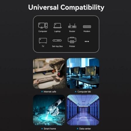 'La versatilidad del cable se ve amplificada por su amplia compatibilidad con varios dispositivos como computadoras, portátiles, enrutadores, módems, televisores, decodificadores e impresoras. Se adapta perfectamente a diversos entornos, incluidos cibercafés, laboratorios de informática, hogares inteligentes y centros de datos, lo que la convierte en una solución altamente adaptable tanto para uso personal como profesional.