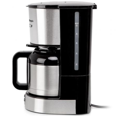 Tiene capacidad para 12 tazas y un depósito con indicador de nivel de agua, para lograr las medidas justas que proporcionen un delicioso café. Durante horas esta exquisita bebida se mantendrá caliente gracias a la jarra termo con doble capa de acero inoxidable con la que viene equipada. Cuenta con indicador luminoso de funcionamiento, una placa calórica antiadherente útil para preservar el calor y función de apagado automático.