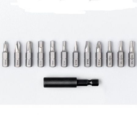 Las 12 brocas de acero aleado S2 de alta calidad son duras, duraderas y tienen un ajuste de alta precisión. Utilice la barra de extensión adicional de 60 mm en lugares estrechos o de difícil acceso, perfecta para la mayoría de las necesidades del hogar.