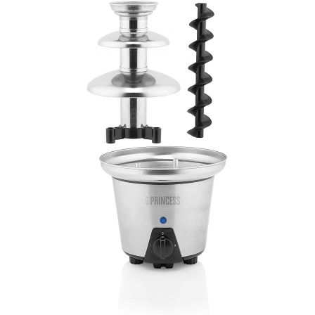 'La fuente de chocolate XL Princess tiene 3 niveles y una altura de 32,5 'cm. Te permite disfrutar de un dulce especial con un grupo grande. 'Gracias a su práctica función de mantener caliente, el chocolate seguirá' estando líquido, sin apelmazarse. La bomba y la temperatura pueden 'ajustarse por separado. De esta forma, podrás decidir la velocidad a la 'que se bombea el chocolate y su temperatura. Con esta fuente de 'chocolate de 90 vatios no tendrás que esperar mucho para que el 'chocolate se caliente y se vuelva líquido. ¡Así la fiesta puede empezar 'de inmediato!