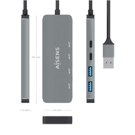 • Name : Hub USB 3.2 Aisens A106-0696/ 2xUSB/ 2xUSB Tipo-C/ Gris