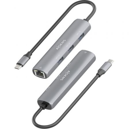 Hub USB Tipo-C Aisens ASUC-4P038-GR/ 3xUSB/ 1xRJ45/ Gris