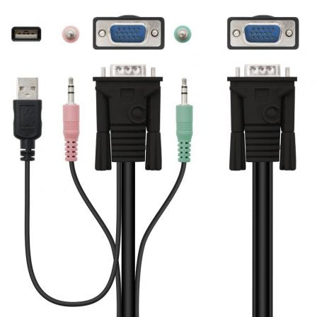 Este KVM switch es un dispositivo que puede controlar dos ordenadores con un solo teclado, ratón, monitor y altavoces