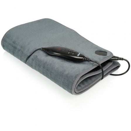 Manta 110 x 40 cm con 6 configuraciones, se apaga después de 90 min. Fondo antideslizante y correa ajustable la mantienen en su lugar. Controlador desmontable y lavable.