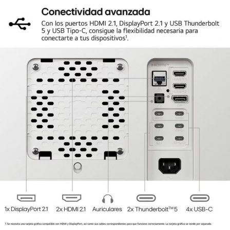 'Conecta tu portátil, cámara, tableta o almacenamiento externo a través de puertos versátiles como Thunderbolt 5, HDMI 2.1 y USB-C. Obtén un rendimiento fluido y estable sin adaptadores ni divisores adicionales.