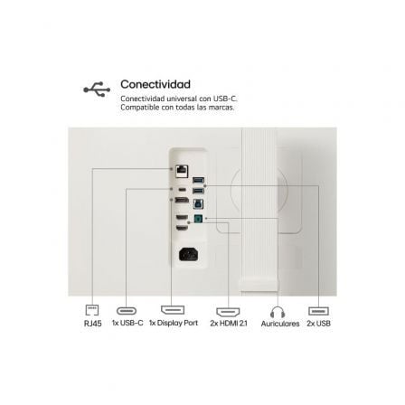 'Alcanza otro nivel de productividad con el puerto RJ45 (puerto LAN) y usa conexión Ethernet. El puerto USB Tipo C permite conectar con varios dispositivos,transferir archivos y cargar (hasta 90W) con un único cable.
