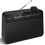 La sintonización analógica te ayuda a encontrar tus emisoras favoritas en esta radio FM/AM portátil. Basta con girar la rueda de sintonización lateral de la radio; la ventana grande y clara muestra la frecuencia sintonizada, y un indicador LED se enciende cuando la señal es intensa.