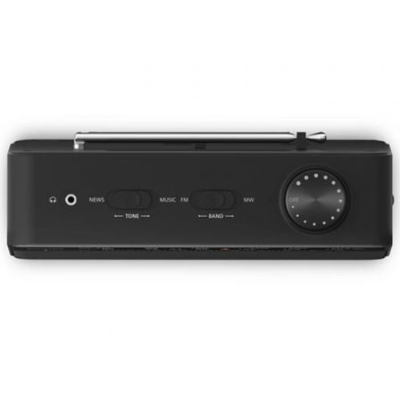 Nunca tendrás que buscar el control de volumen en esta radio. Además del gran dial de volumen, la radio dispone de interruptores montados en la parte superior para cambiar entre las señales FM/AM y los modos de sonido. También encontrarás un puerto para auriculares para una escucha privada.