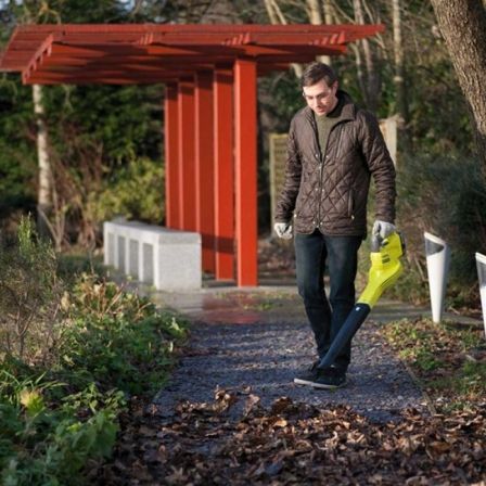 Como' parte del sistema Ryobi ONE+™ de más de 200 herramientas a batería, 'destacamos el kit básico de soplador a batería 18V ONE+™. Es perfecto 'para barrer superficies duras como terrazas, patios y garajes.