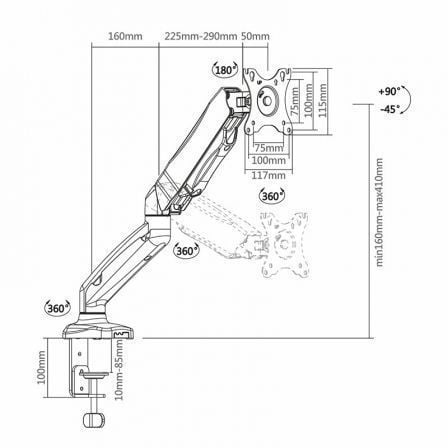 AISENS® – Soporte de mesa contrapeso giratorio e inclinable para monitor' (3 pivotes, 1 brazo) de 13”-32”. Fabricado con aluminio de alta 'resistencia y pintado con pintura electrostática para un acabado 'perfecto