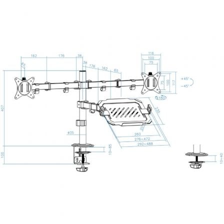 Soporte de Mesa para 2 Pantallas 17'-32' y Portátil, Negro