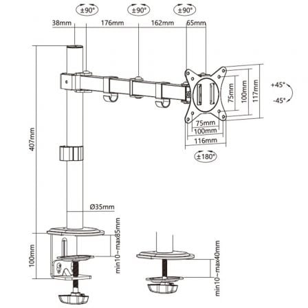 • VESA Máximo: 100x100mm (Compatible con VESA de 75x75, 100x100mm)