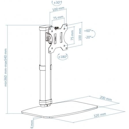 • Rango de ajuste para la altura del soporte: 360-540 mm