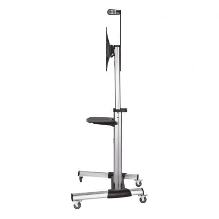 AISENS® – Soporte de suelo eco con rueda, bandeja para DVD y soporte de cámara para monitor/TV de 37”-70”. Fabricado con acero de alta resistencia y pintado con pintura electrostática para un acabado perfecto.