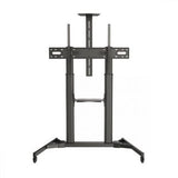 'Soporte de suelo para TV Para TV de 60'' a 100'' y VESA '200/300/400/400x200/600x400/800x400/800x600/1000x600. Es ajustable en 'altura, anchura e inclinación. Incluye bandejas soporte para DVD/TDT y 'cámara ajustables en altura. Ruedas con freno que permiten fijar el 'soporte al suelo, evitando desplazamientos no deseados. Fácil montaje y 'operación. Incluye instrucciones y accesorios de montaje. Es perfecto 'para aplicaciones de docencia, presentaciones, conferencias, etc.