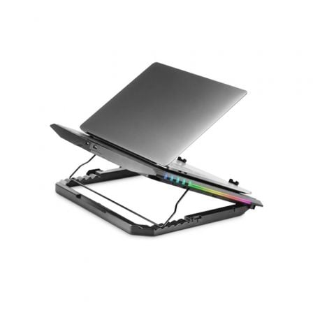 Equipada con una rejilla especial de aluminio y una estructura de ABS resistente, la base MNBC5 ofrece un soporte perfecto para portátiles de cualquier tamaño, protegiéndolo del sobrecalentamiento gracias a sus 6 ventiladores controlados digitalmente, y proporcionando una superficie antideslizante que te ayude a disfrutar de tus sesiones gaming en cualquier sitio.