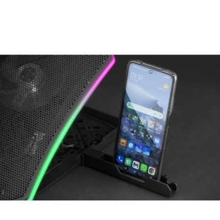 'Base de refrigeración y soporte premium para portátiles avanzados. Todo 'lo que puedas desear al alcance de tu mano: espectacular iluminación 'ARGB dinámica controlable, gran tamaño XL para soportar los portátiles 'más potentes, refrigeración extrema con 3 grandes ventiladores 'controlados digitalmente, función stand con 7 posiciones seleccionables y' un stand exclusivo para tu smartphone.