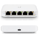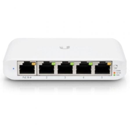 Un conmutador compacto de capa 2 de 5 puertos que se puede alimentar con PoE o un adaptador USB-C de 5 V.